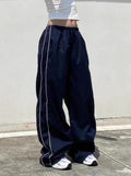 Navy Blue Retro Sport Baggy Pants with Stripes