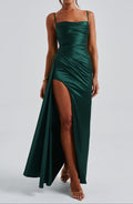 Flattering Cowl Neckline & Luxe Fit – The Winona Maxi Dress is crafted from premium stretch satin, offering a luxurious shine and figure-hugging silhouette for a dreamy, flattering fit.