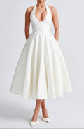 Adjustable Elegance: Adjustable halter ties and a discreet invisible zipper ensure both security and effortless sophistication.