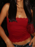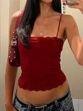 Red Vintage Revealing Neckline Slimming Cami Top