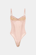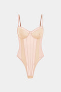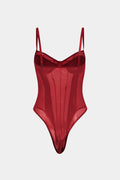 Solid Color Y2k Mesh Backless Sheer Patchwork Corset Slip Bodysuit