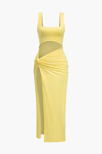 Solid Color Y2k Twist Front Cut Out Slit Midi Dress