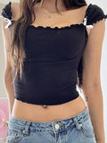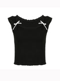 Sweet Bow Square Neck Short Sleeve Crop Tee