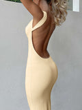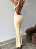 Vintage Slim Fit Butt Hugging Maxi Dress with Backless