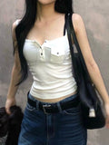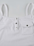 White Vintage Bottons Front Tank Top with Pocket