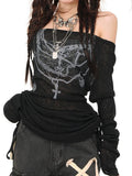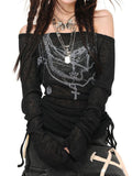 Retro Vibe: Embrace the nostalgic style of the 2000s with this Classic Off Shoulder Long Sleeves Tee, perfect for adding a touch of vintage flair to your modern wardrobe.